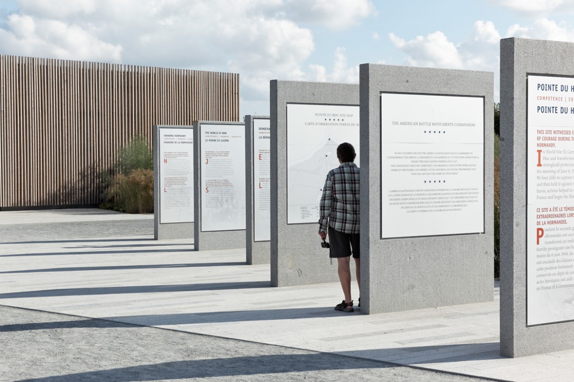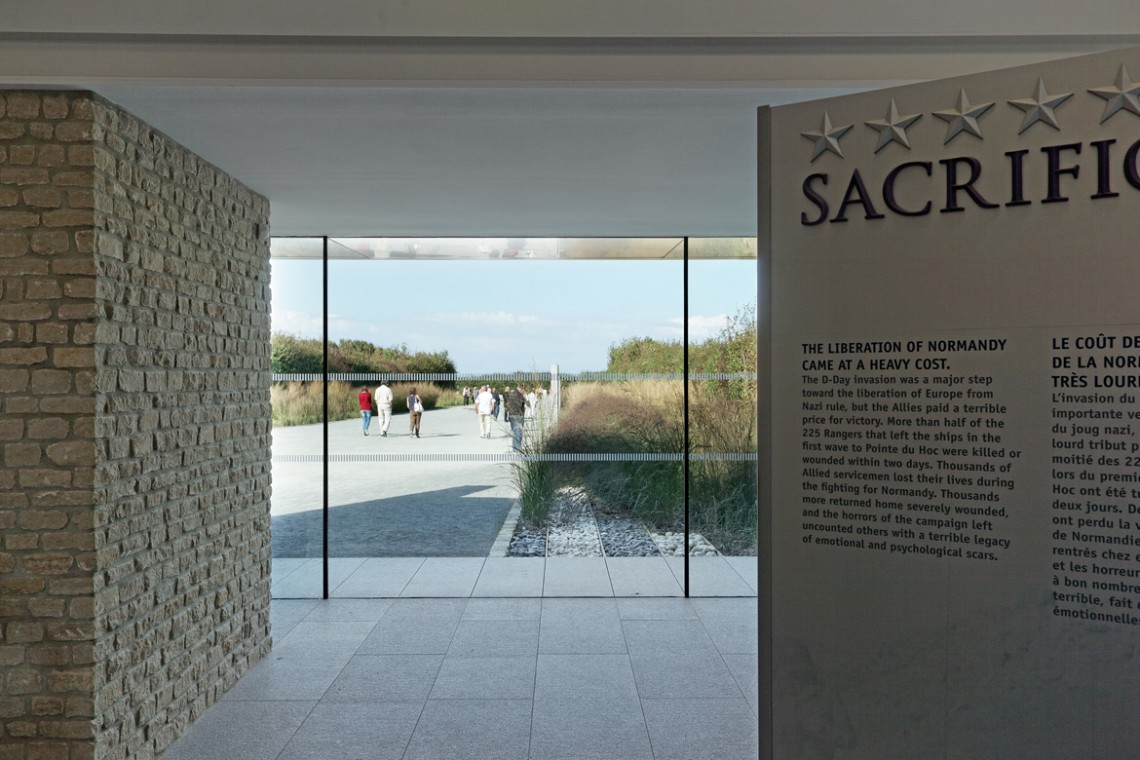 Drawn both by its historical significance and the natural beauty of the battlefield, Pointe du Hoc Ranger Monument has become one of the most visited sites of the D-Day landings. The new Visitor Center has been designed as a dignified place of commemoration that acts as a gateway to the site, allowing visitors to discover the historic battlefield with a heightened sense of reflection.