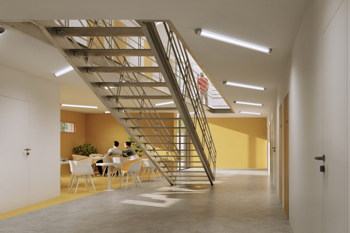 The project is designed with the notion of respecting the dignity of each individual and keeping in the foreground the concept that the facility must be adapted to its goal of accompanying the process towards a rediscovered place within society. Our ambition is to propose a design that embodies the notion of a respectful place to live and work.