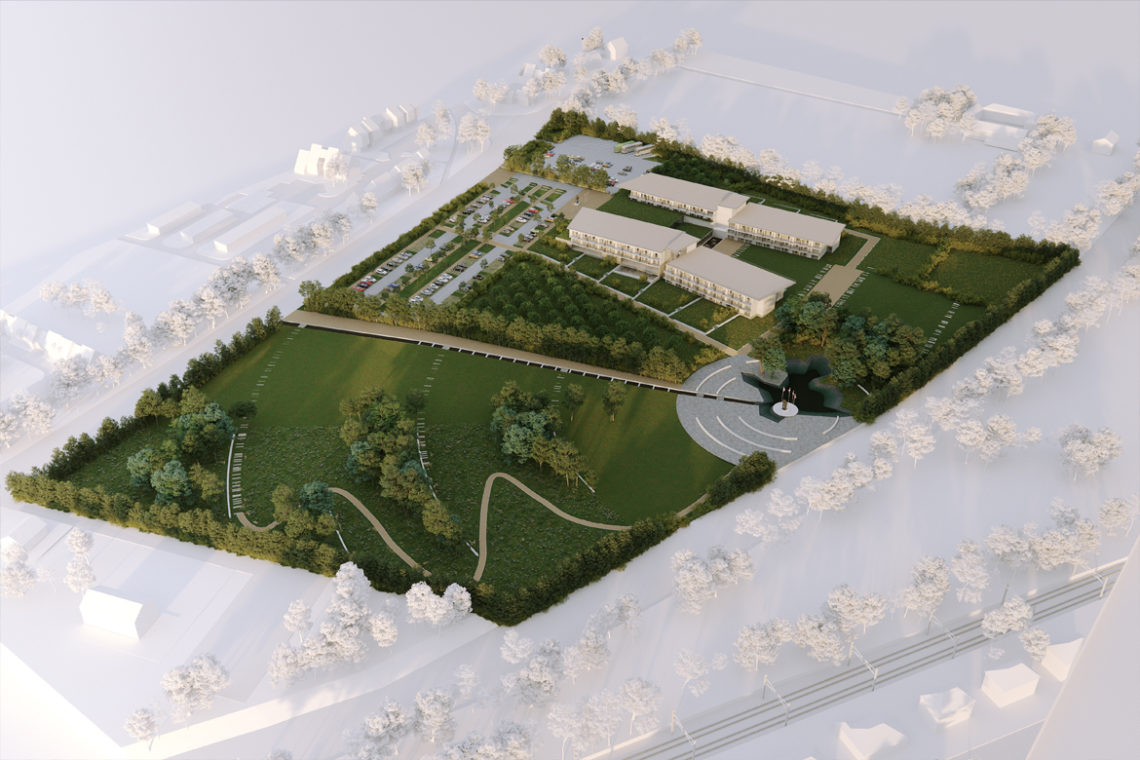 program: construction of a 200-room 4-star hotel with three restaurants, conference rooms, and a public memorial park dedicated to the Battle of Bloody Gulch.