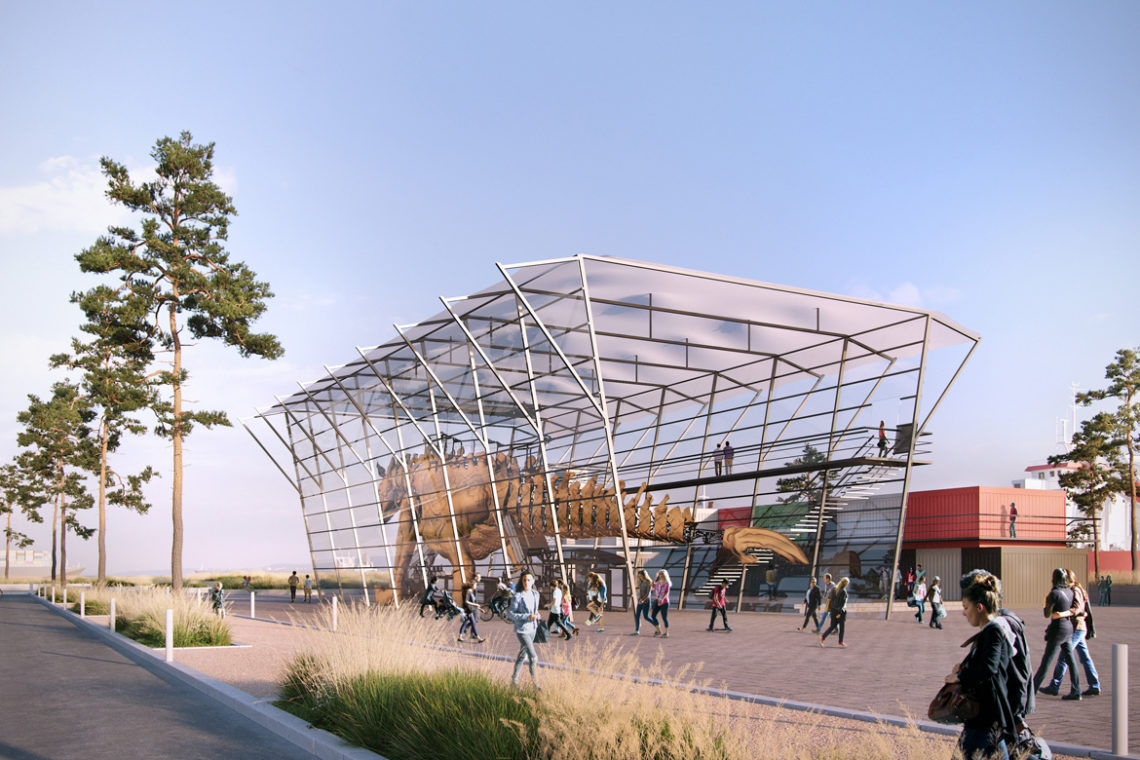 The project for a temporary shelter must have as its primary objective the ability to re-qualify the Ocean Front by imagining a structure that will invite discovery and offer to the city of Calais a new shared urban setting. Our proposal seeks a multi-purpose intervention, designed to allow visitors a memorable meeting with the Dragon of Calais, but also allowing residents of Calais the possibility of appropriating the esplanade, an urban space dedicated to shared experiences and meetings.