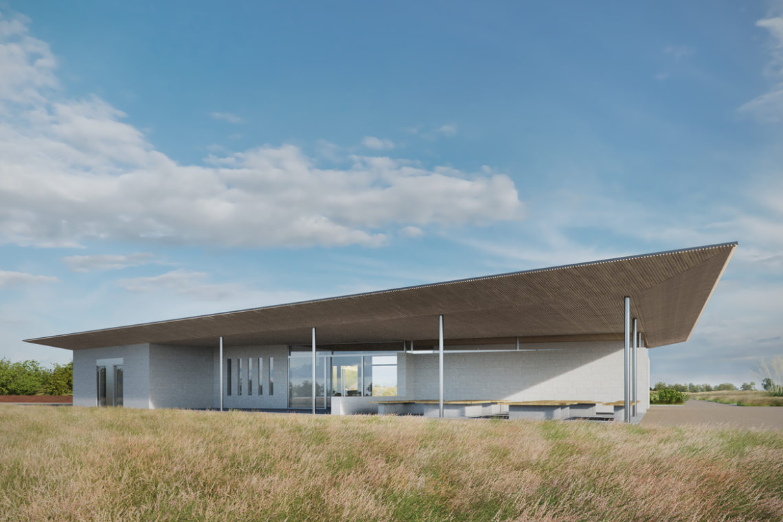 The building is designed as a portico, opening towards the Garden of Memory and the battlefield trail. It is the threshold to the historic site. A key concern for the visitor center is to fit perfectly into a site which is unique by its natural setting and state of conservation. The project must be able to complement the landscape and allow for an immersive experience for visitors coming to explore the site.