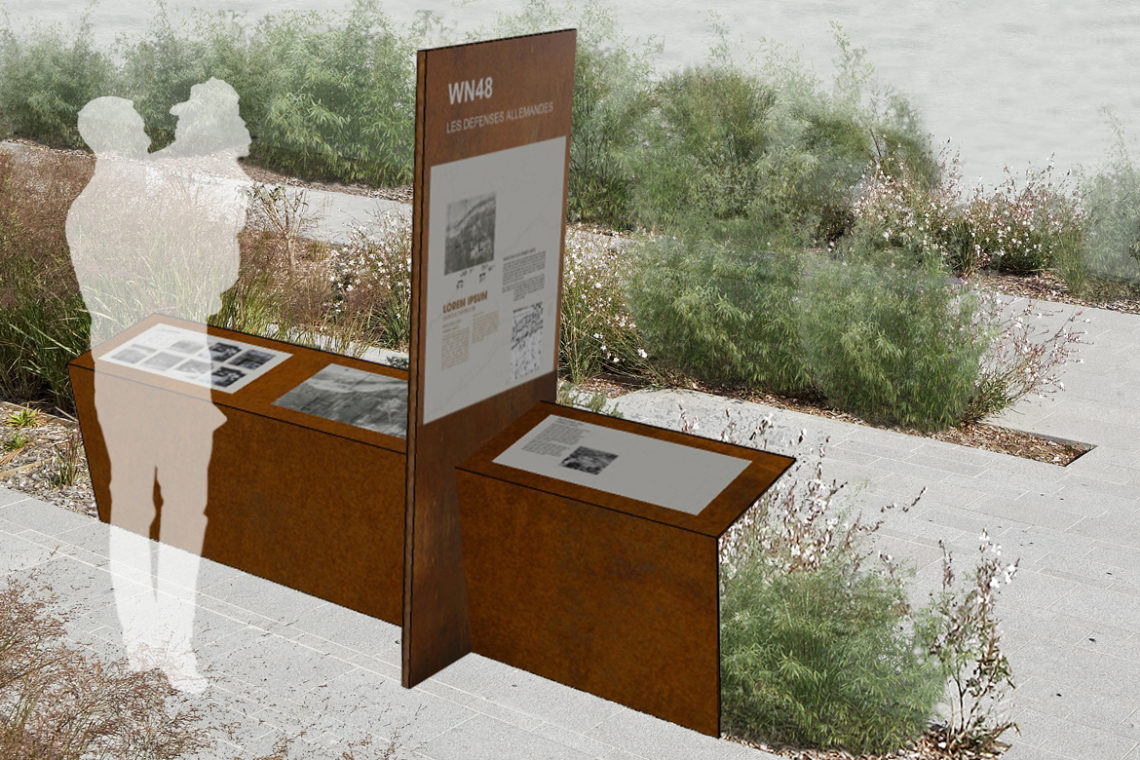 The Allies were fully aware of the danger posed by the batteries located at Longues-sur-Mer: the success of the D-Day landings would depend on their ability to effectively neutralize them on June 6. Our landscape proposal is intended to make the threat that the batteries represent clearly visible on the landscape. The visitor center marks the arrival on the site: by its composition, it orients visitors from the car park to the historic site.