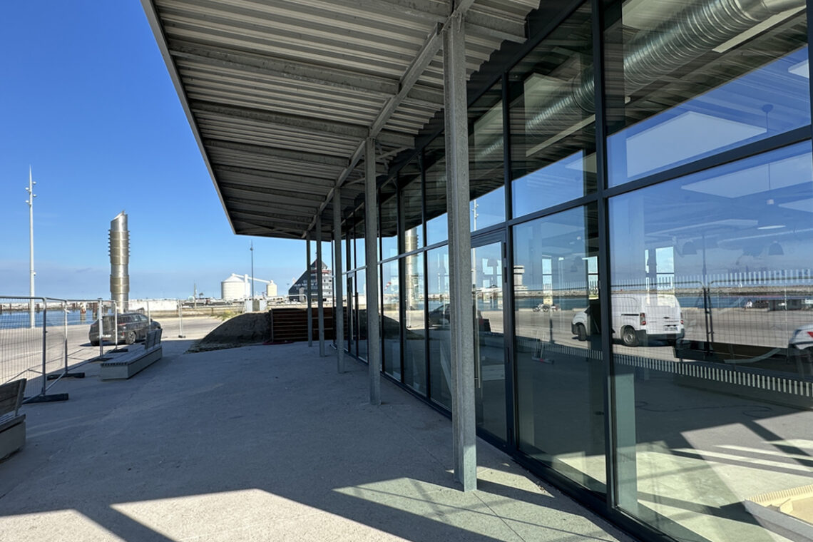program: New beach-side vistor center for the Dragon of Calais, including restaurant, gift shop, administrative offices, and landscaped terraces.